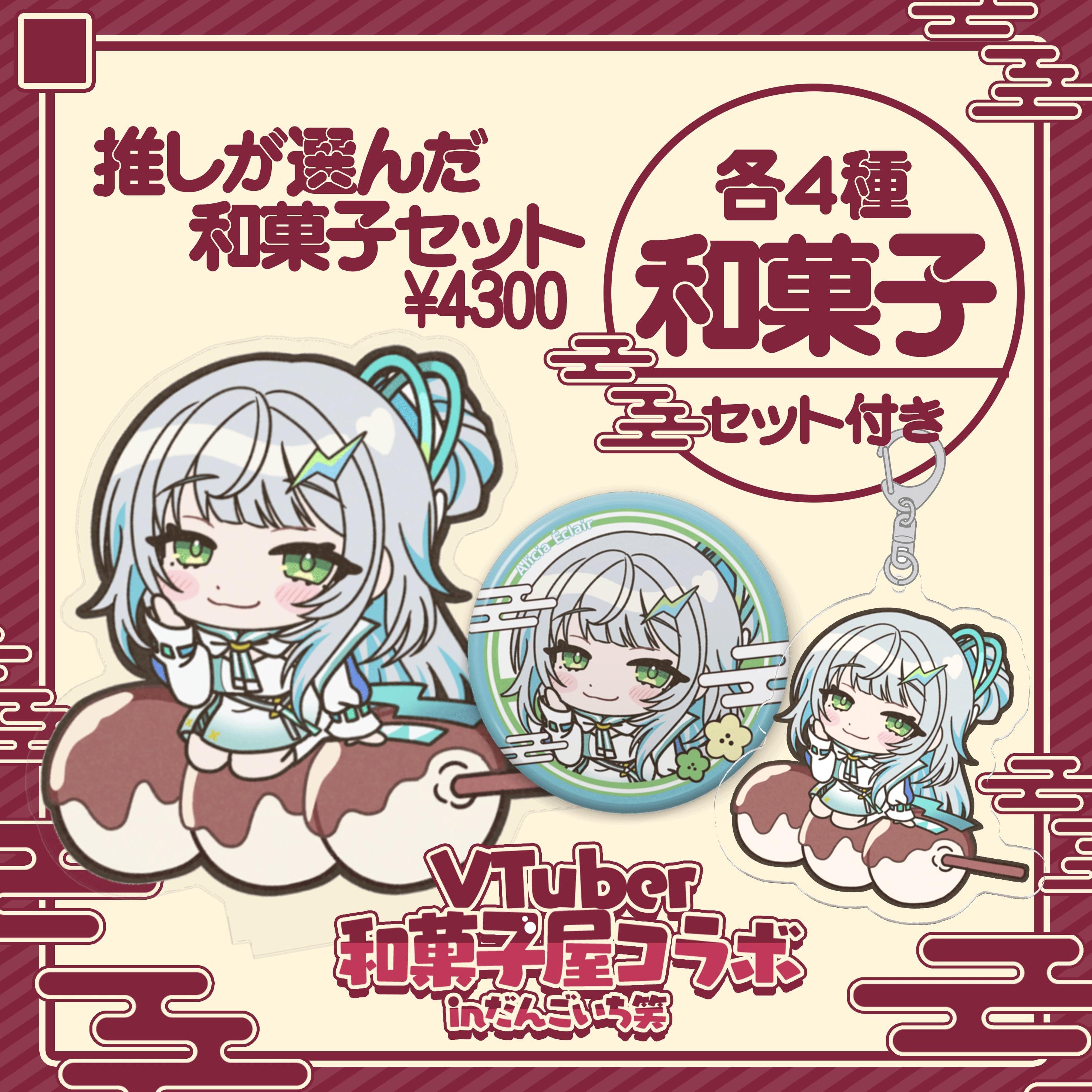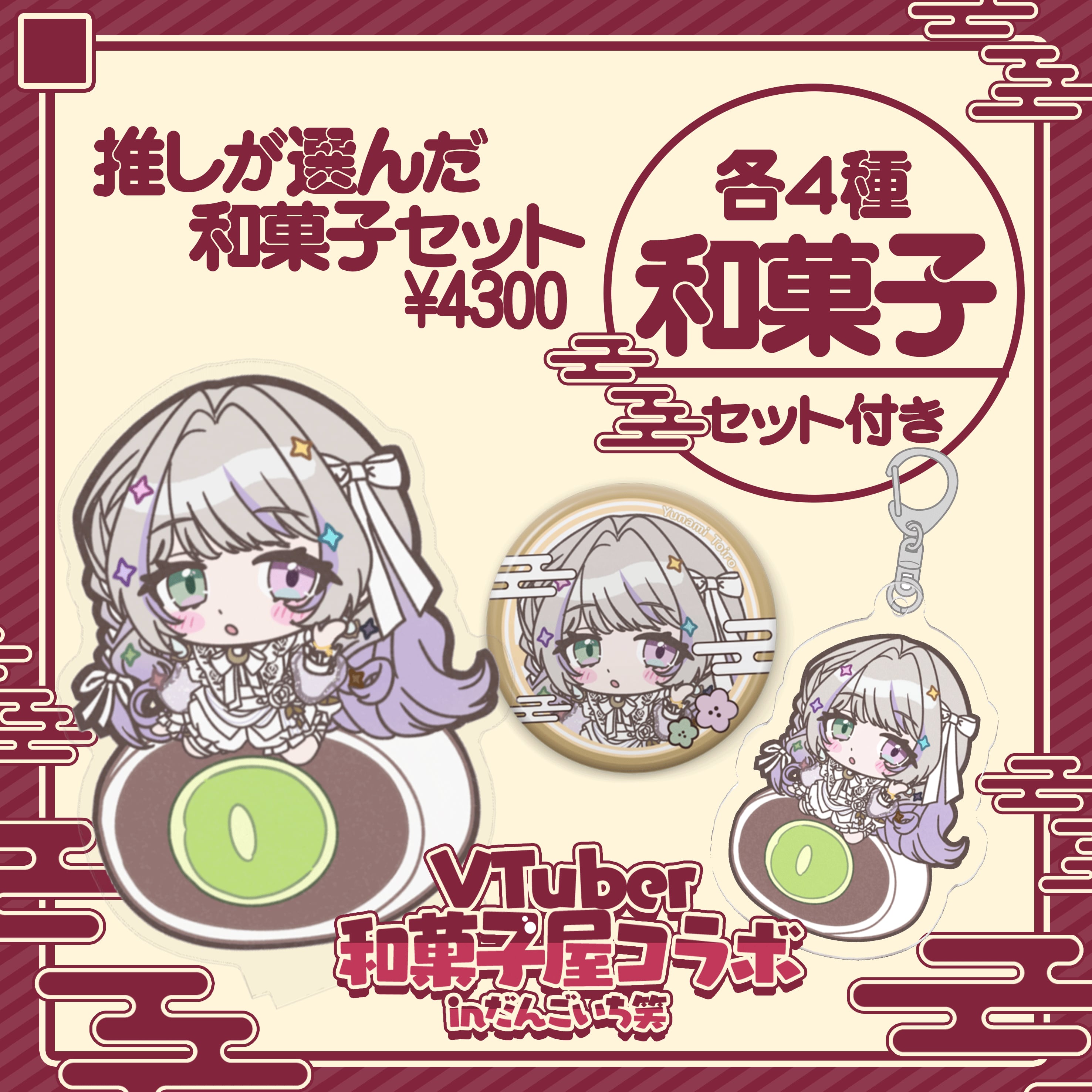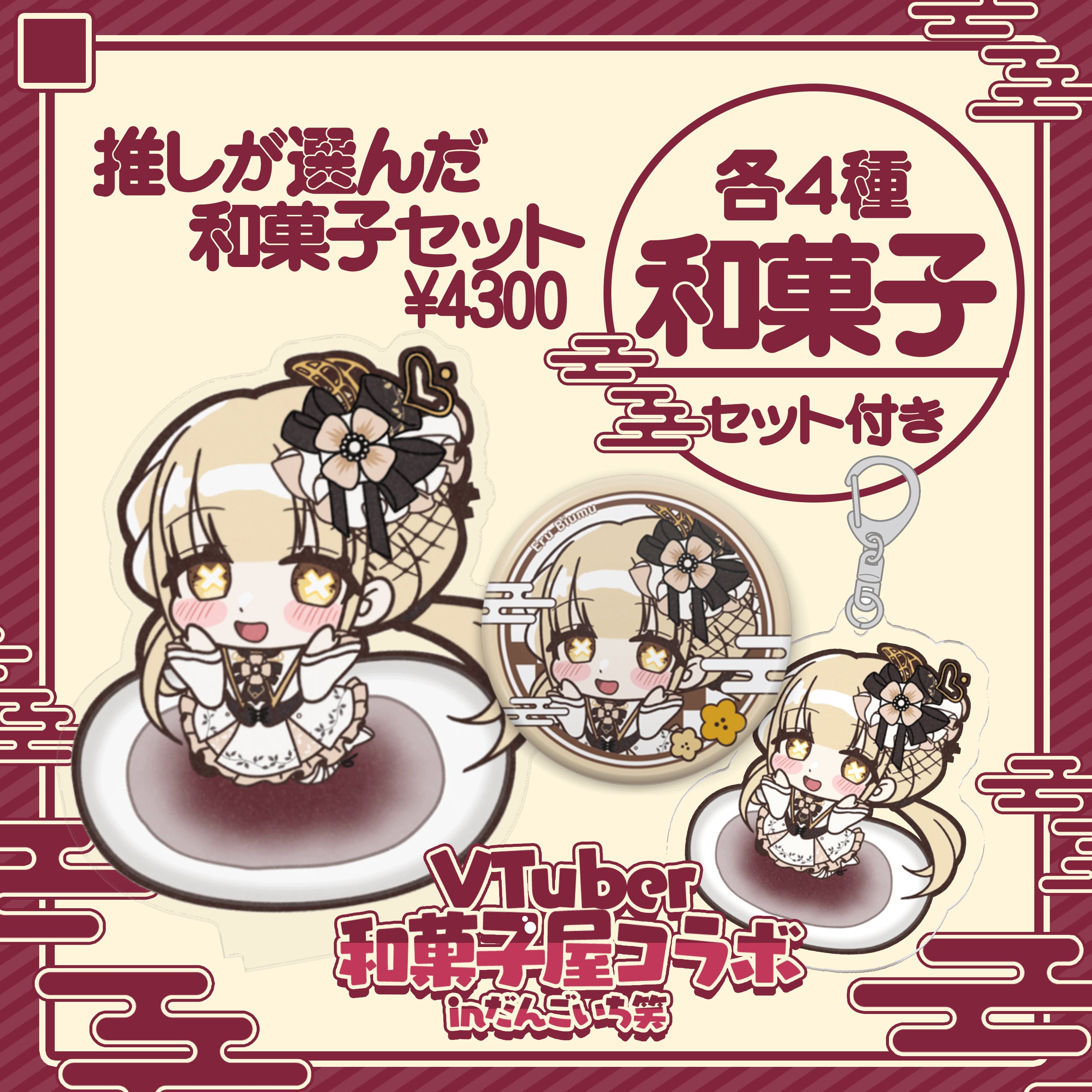 ※各出演者が事前に下記の和菓子の中から【4つ】選択しております。何を選んだかに関しては、各出演者様のSNSおよび配信でご確認ください。